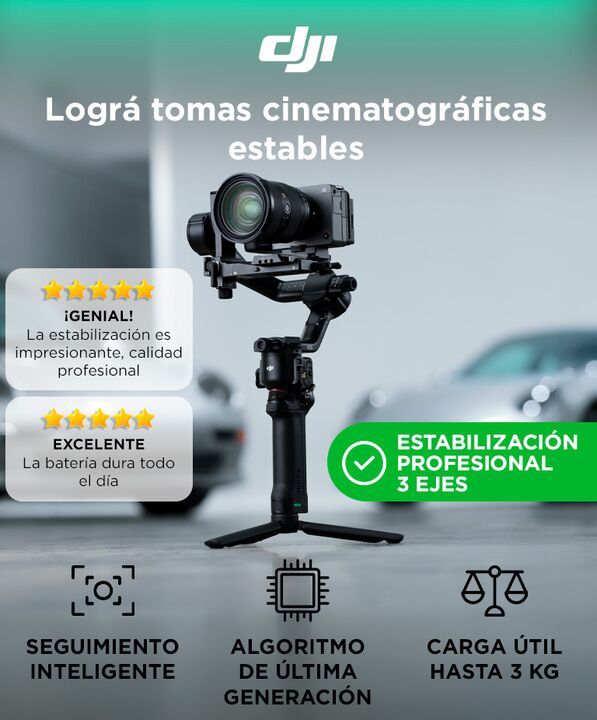 Estabilización profesional de 3 ejes: El DJI RS 5 ofrece movimientos fluidos y precisos para grabaciones cinematográficas. Ideal para producciones profesionales, publicidad y contenido audiovisual exigente. Alta capacidad de carga para cámaras avanzadas: Diseñado para soportar cámaras mirrorless y e...