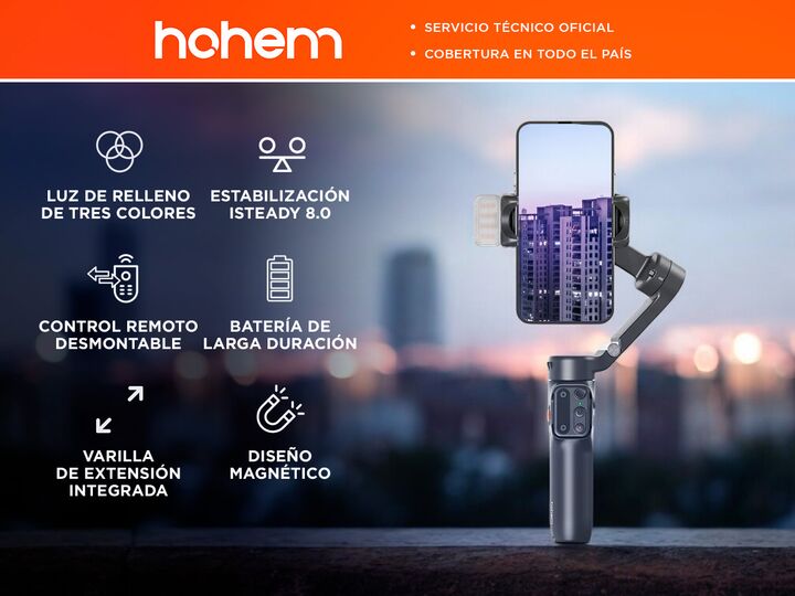 Hohem presenta el Estabilizador iSteady X3 (HPG-X3P): Control remoto desmontable: Incluye un control remoto magnético que permite operar el estabilizador a una distancia de hasta 10 metros, facilitando la captura de selfies, fotos grupales y tomas creativas sin necesidad de tocar el dispositivo. Luz...