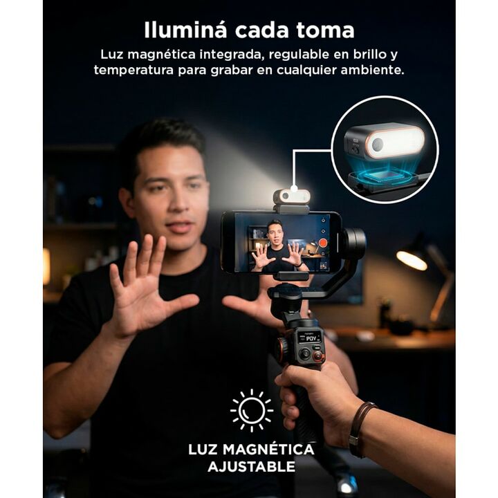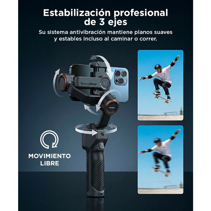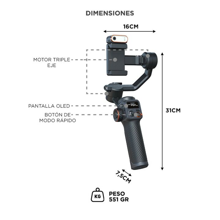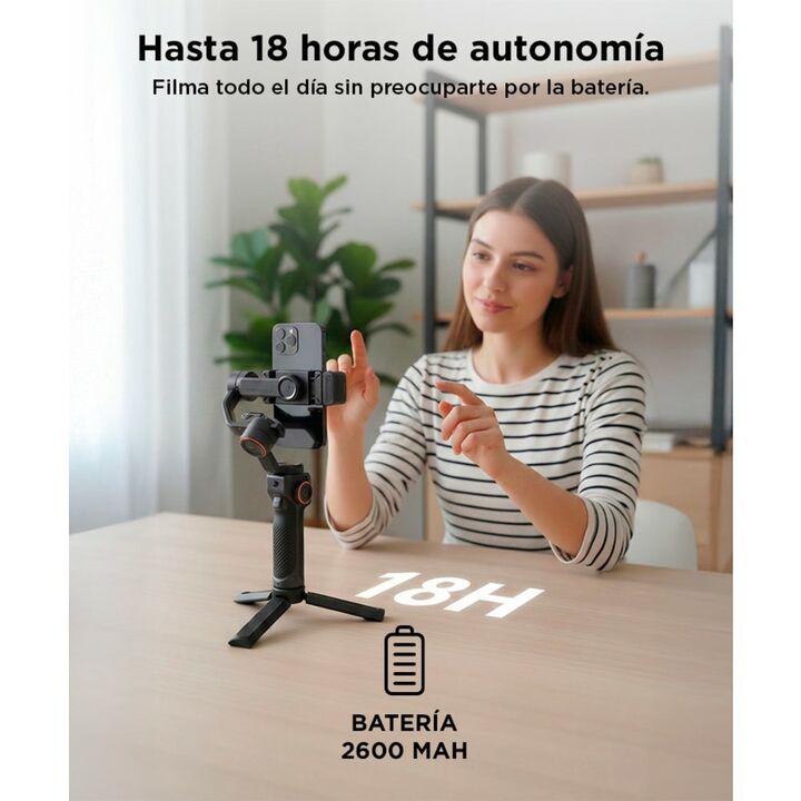 Presentamos el estabilizador para celulares ideal para creadores de contenido, con tecnología de punta para capturar imágenes de la más alta calidad. Con un diseño compacto y ligero, su cardán de 551 g, fabricado con materiales compuestos de alto rendimiento, soporta una carga útil de hasta 400 g. C...