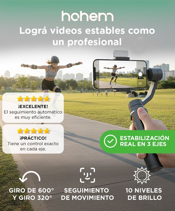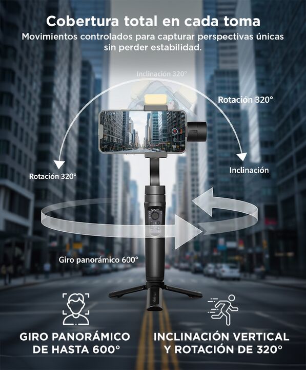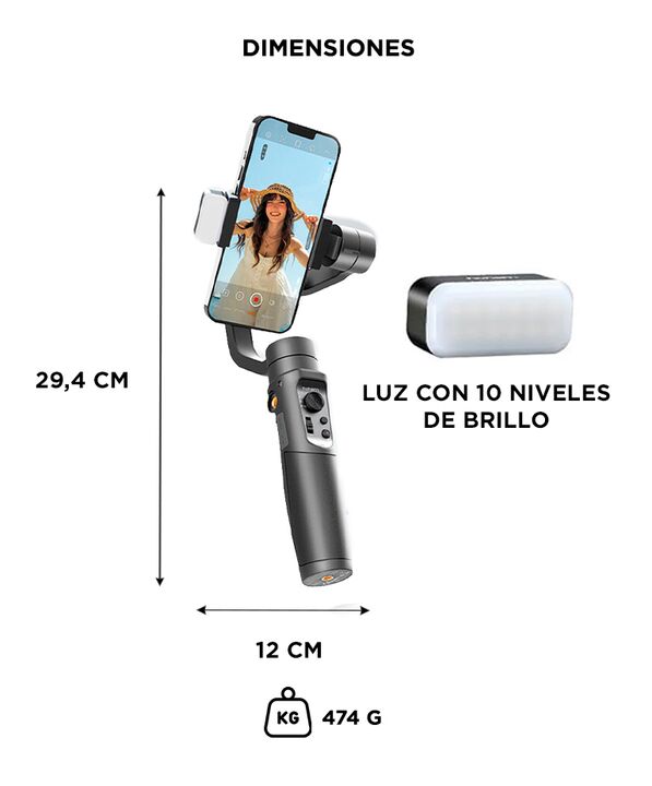 El estabilizador para celulares con luz de relleno es una herramienta perfecta para creadores de contenido que buscan una estabilidad superior y versatilidad en sus grabaciones. Con un peso de solo 474 g, incluyendo la batería, y un diseño plegable compacto de 294 x 120 x 47 mm, es fácil de transpor...