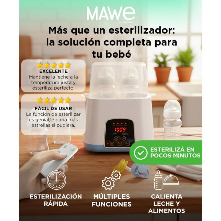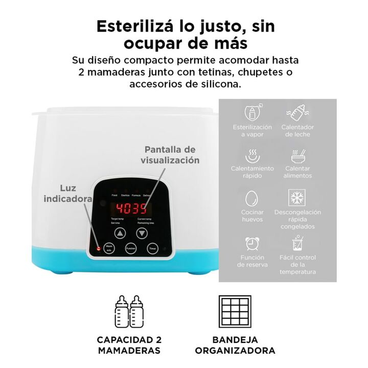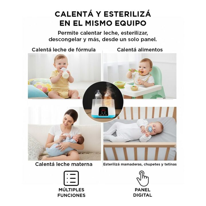 ¡Nuevo Esterilizador Inteligente de Biberón! Este calentador y esterilizador de mamaderas es ideal para mejorar la alimentación de tu bebé otorgando un dispositivo seguro y especialmente diseñado para leche materna y de formula. Es seguro y libre de BPA Doble capacidad No solo es un calentador rápid...
