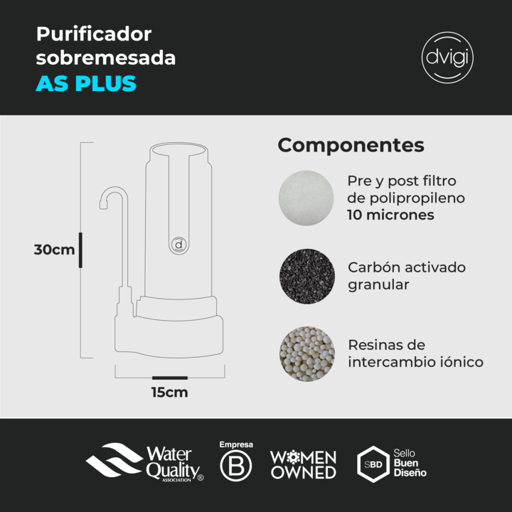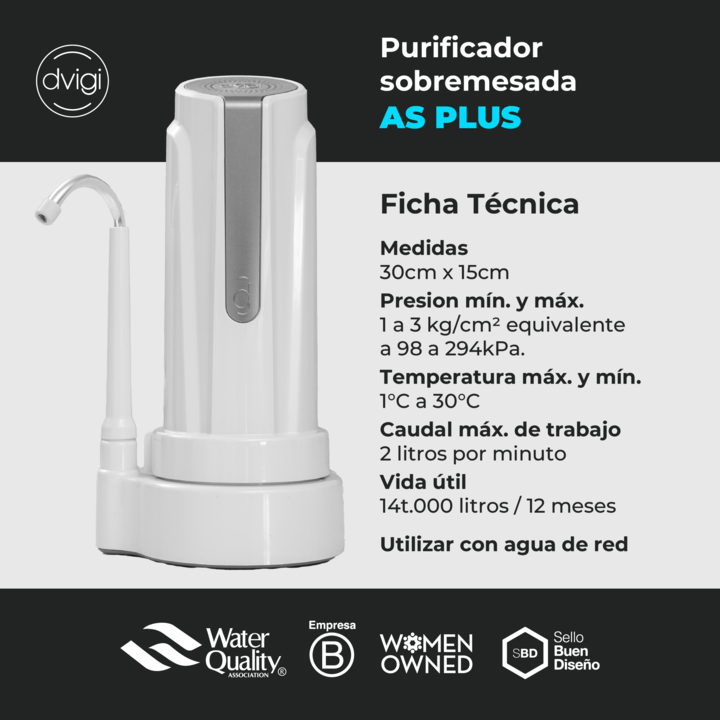 Filtro Purificador de Agua AS PLUS Dvigi