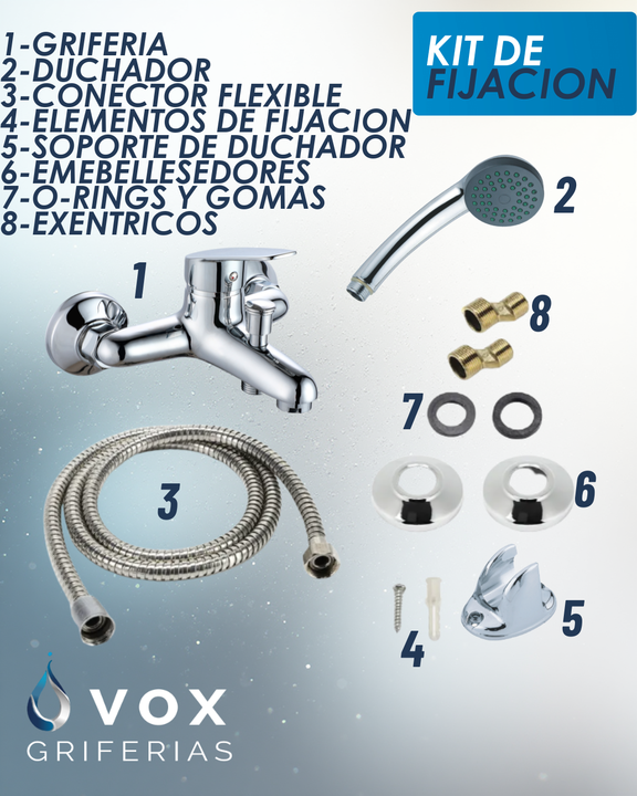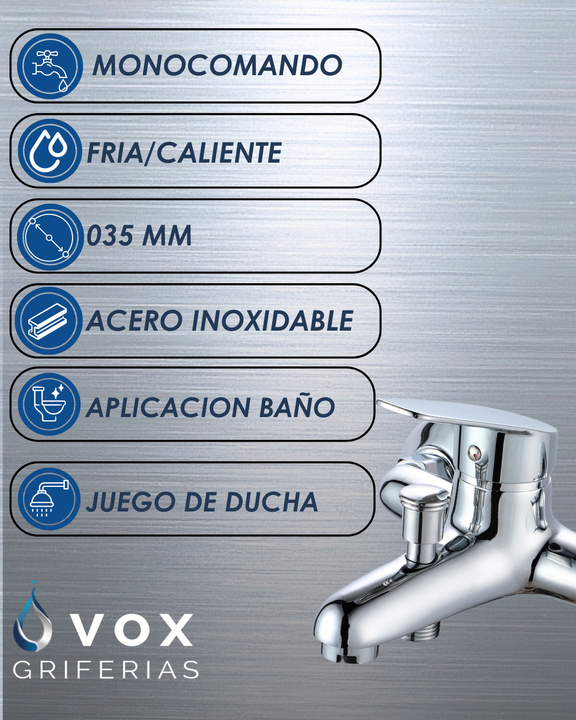Flor Ducha Monocomando Vox Griferías con Duchador de Mano – Cromado Plateado Brillante
