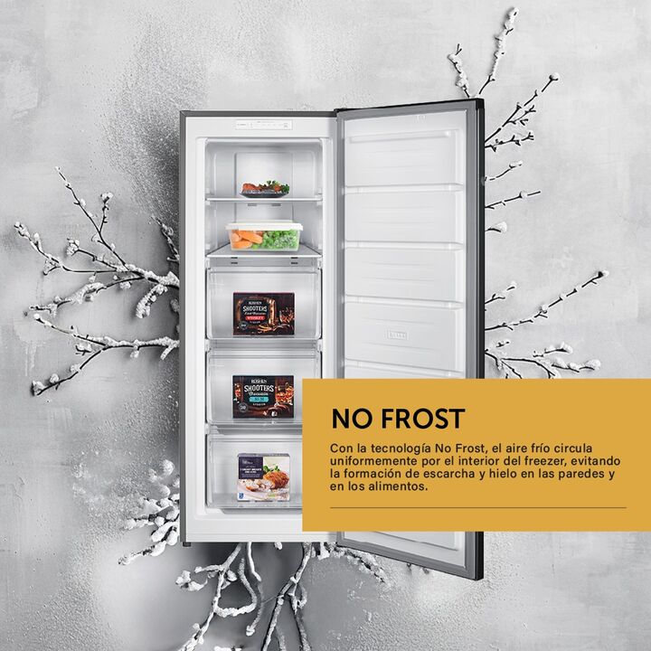 El Freezer VerticalNo Frost Digital de Vondom es la solución perfecta para mantener tus alimentos congelados de forma eficiente y organizada. Con una capacidad de 179 litros, este freezer cuenta con una puerta reversible que se adapta a tus necesidades de espacio en la cocina. Además, su eficiencia ...