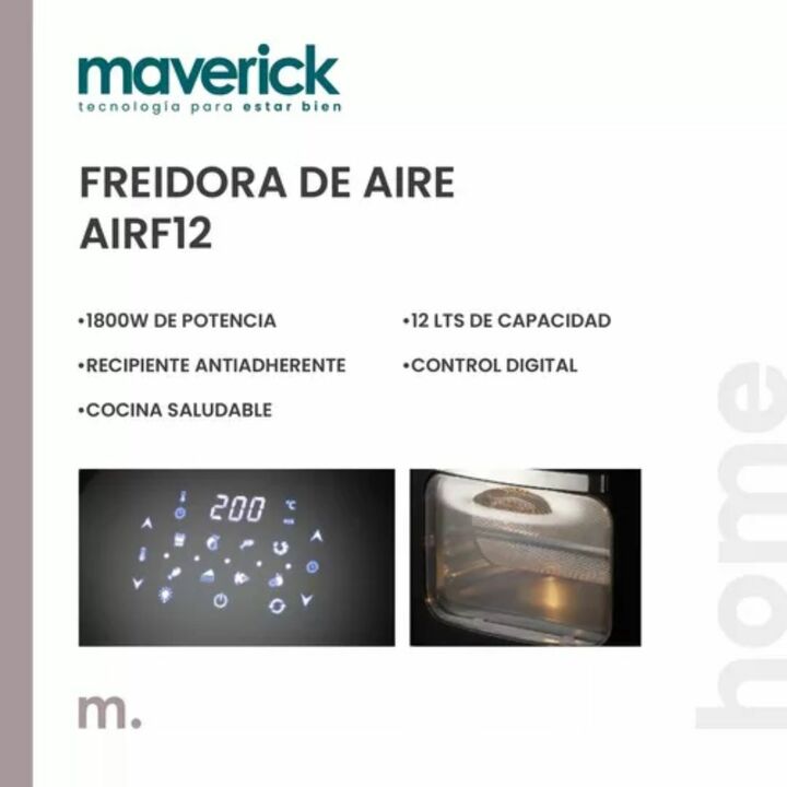 La Freidora de Aire Maverick AIRF12 es ideal para cocinar de forma más saludable, rápida y versátil, utilizando poco o nada de aceite. Con su gran capacidad de 12 litros y 1800 watts de potencia, permite preparar comidas completas...