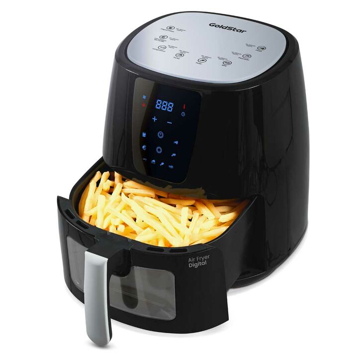 Potencia 1300 Watts. Capacidad 6 litros. Para freir hornear o cocinar. Facil limpieza. Recipiente antiadherente extraible con grill. Separador Panel de control TACTIL .Display digital con indicadores luminosos. Coccion por circulacion de aire caliente Ventana. Frontal transparente. Temporizador de 3...