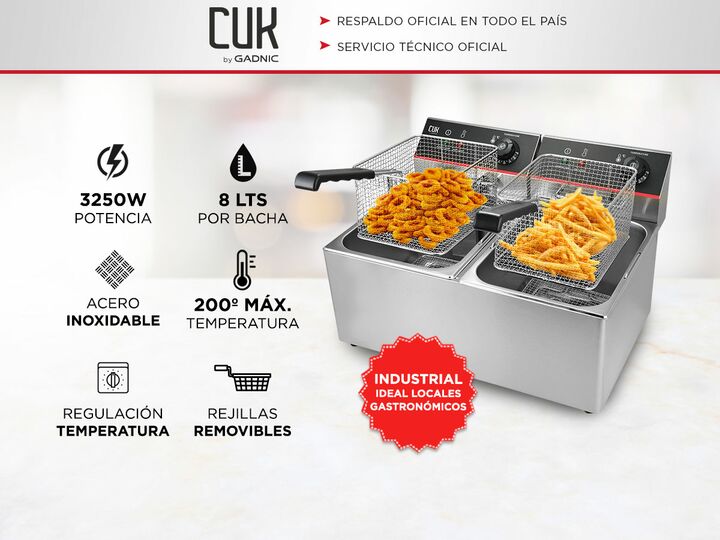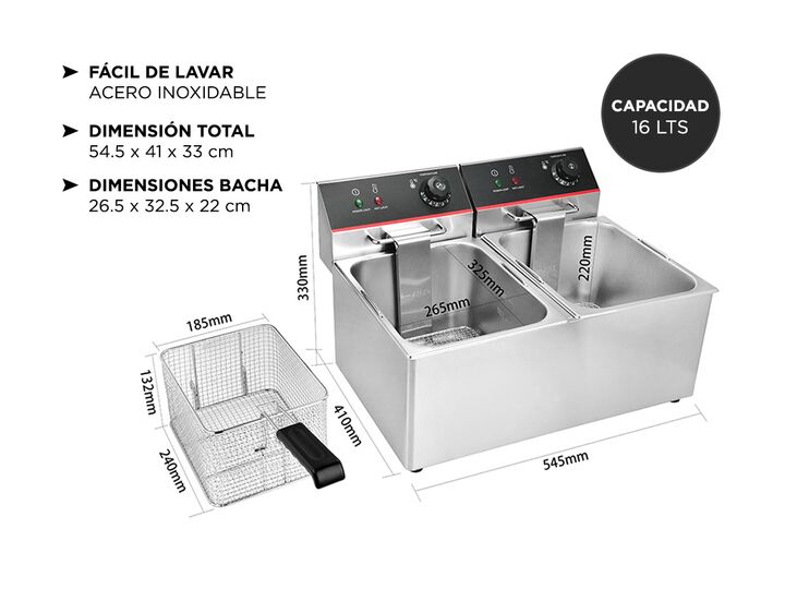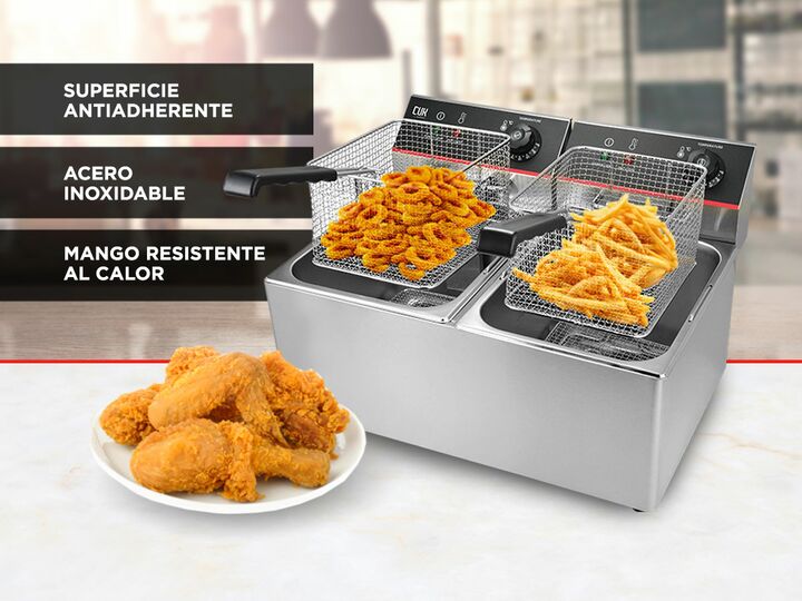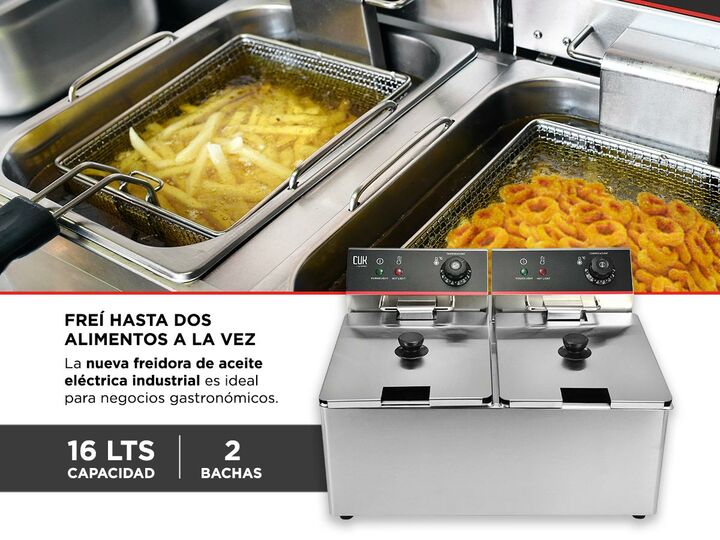 ¡Nueva freidora de aceite eléctrica industrial! Ideal para negocios gastronómicos, la freidora eléctrica tiene una capacidad de 16lts y funcionamiento de calentamiento rápido Tus papas fritas, pollo, aros de cebolla y quedarán crujientes y en el punto justo con el regulador de temperatura. No es nec...