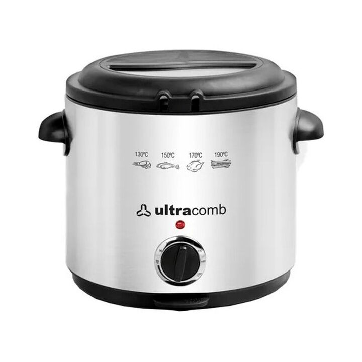 Tambin pueden prepararse pastas consoms etc.Potencia 1000W.Capacidad Mxima 15 litros.Termostato variable hasta 190C con corte de seguridad. Cuerpo exterior en acero inoxidable.Cestillo metlico freidor con asa desmontable.Luz piloto indicadora de funcionamiento.Tapa rebatible con ventana y filtro par...