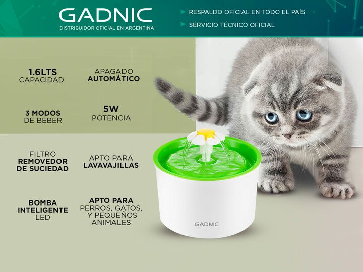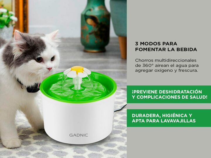 ¡Gadnic presenta su nueva línea de Fuente de Agua Recirculante! La fuente de agua para gatos proporciona agua fresca y limpia, con una capacidad de 1.6 litros, lo que anima a tu gato a beber más y mantenerse sano e hidratado. Está diseñada para ser fácil de desmontar y limpiar, gracias a sus piezas ...