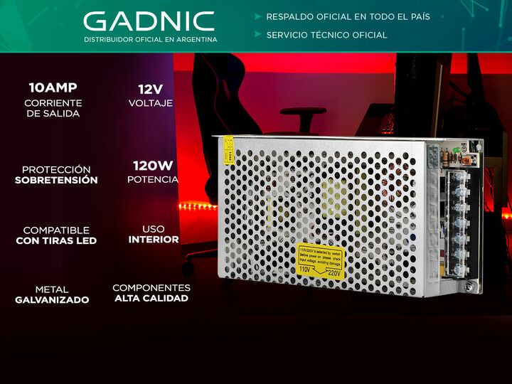 Especificaciones Protección de sobre carga/ sobre voltaje/ de corto circuito Rango de frecuencia de entrada: 50/60 Hz Temperatura de trabajo: -20~60 Corriente de salida: 10 amperios Voltaje de entrada: 100-240 V CA Voltaje de salida: 12V CC Excelente calidad Alto rendimiento Potencia: 120W Medidas: ...