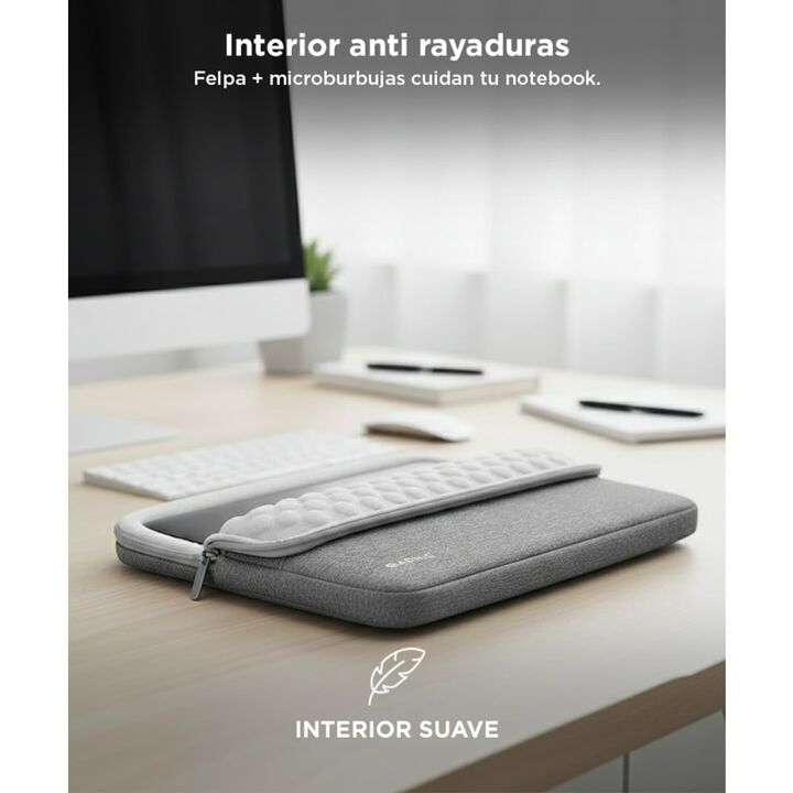 Proteccion reforzada para notebooks y portatiles La funda bolso Gadnic premium esta diseñada para proteger notebooks y MacBook de hasta quince coma seis pulgadas durante el transporte. Incorpora refuerzos en las esquinas que absorben impactos y mejoran la seguridad del equipo. Es una solucion tecnic...