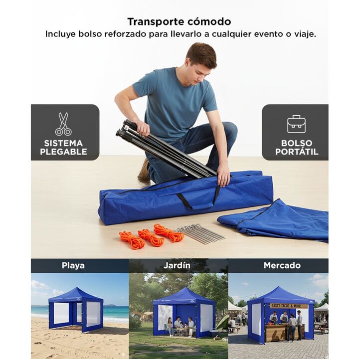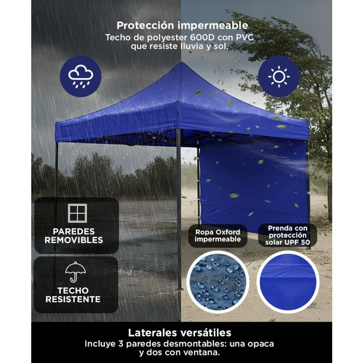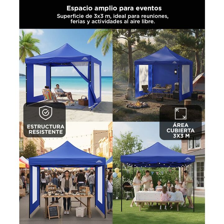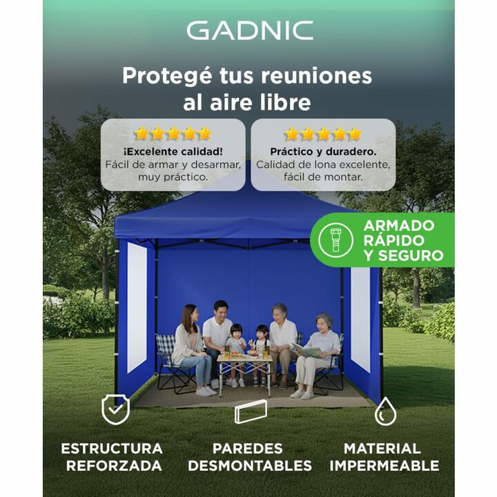 ¡Gadnic presenta su nueva línea de Gazebos 3x3! Este gazebo de alta calidad es ideal para disfrutar al máximo de tus aventuras al aire libre, ya sea en eventos, reuniones o escapadas. Diseñado para resistir todo tipo de clima, su estructura está hecha con materiales impermeables y resistentes al vie...
