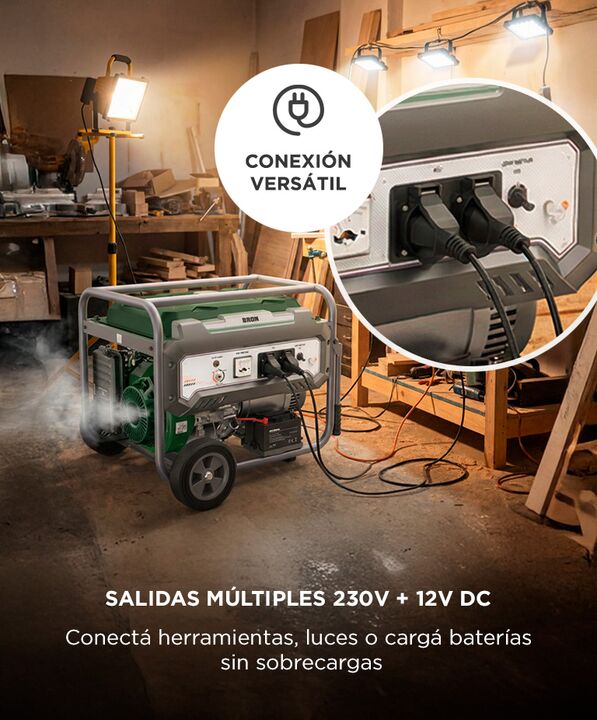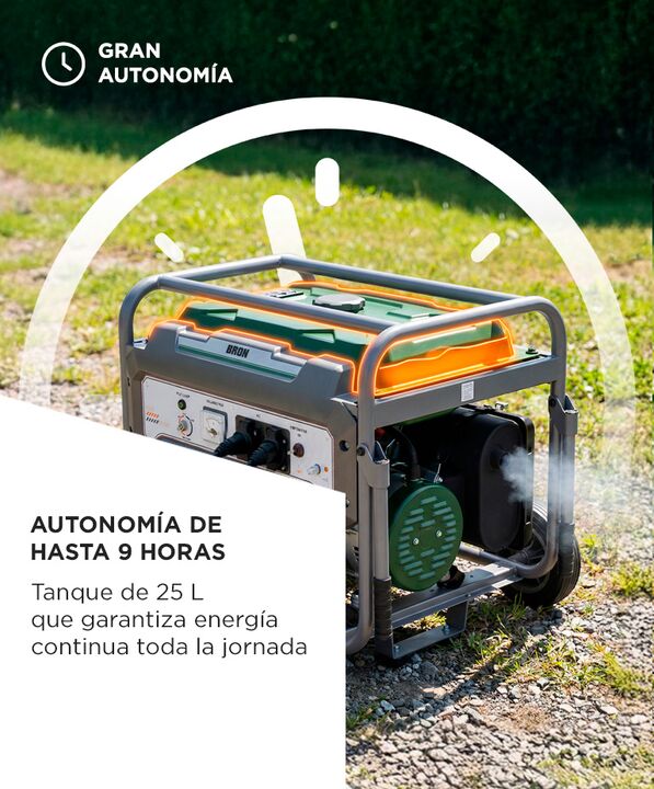 ENERGIA CONFIABLE EN TODO MOMENTO El generador BRON by Gadnic esta diseñado para ofrecer suministro electrico en lugares sin acceso a red Su potencia permite alimentar diferentes equipos de forma simultanea sin comprometer el rendimiento Es una solucion adecuada para situaciones de emergencia o trab...