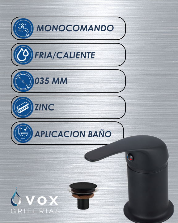 La grifería canilla bidet monocomando Vox Griferías en color negro mate es la elección perfecta para quienes buscan un diseño moderno y funcional en su baño. Su acabado mate no solo aporta elegancia, sino que también es fácil de limpiar y mantener, asegurando que tu espacio se vea siempre impecable....