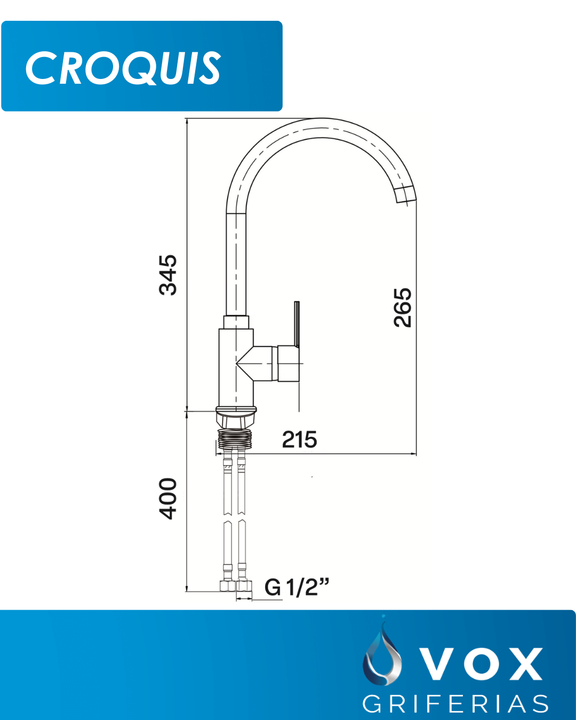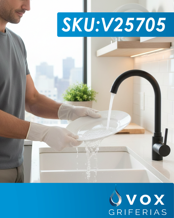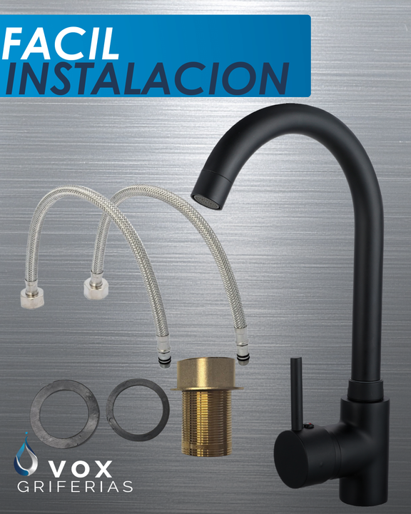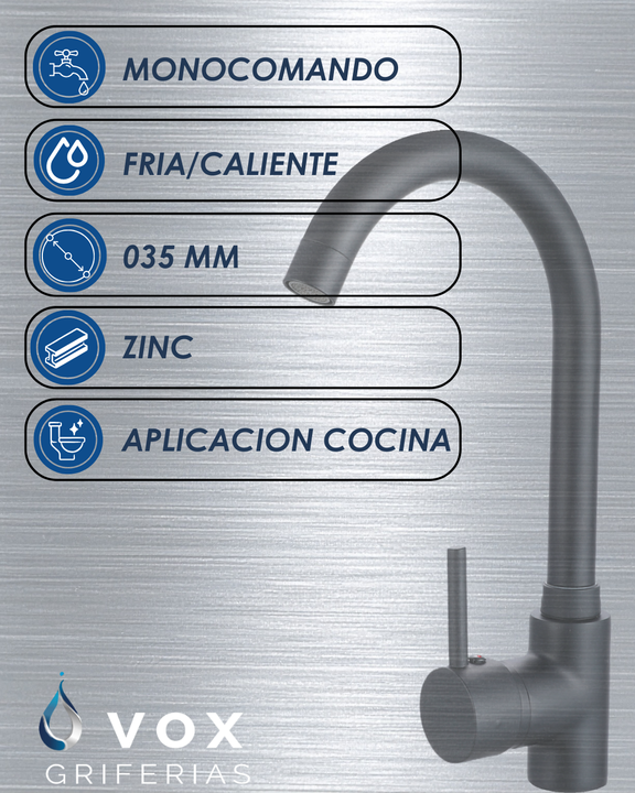 Griferia Cocina Canilla Monocomando Vox Griferias 035mm Zinc Negro Mate