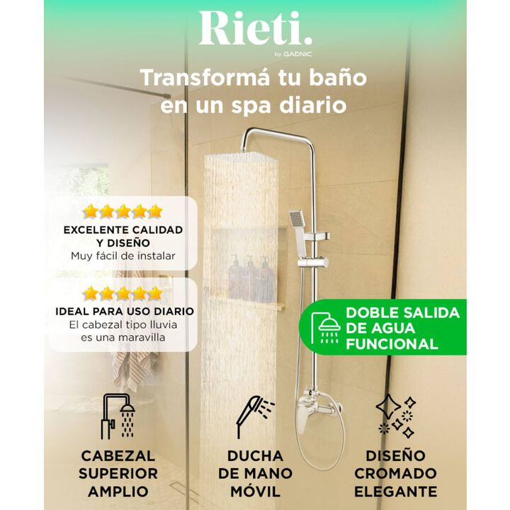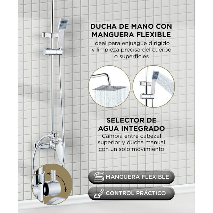 Doble salida de agua funcional: Elegí entre el cabezal tipo lluvia o la ducha de mano según cada necesidad. Ideal para una experiencia completa y personalizada en el baño. Diseño moderno y resistente: Acabado cromado que combina con cualquier baño y materiales duraderos que aseguran larga vida útil....