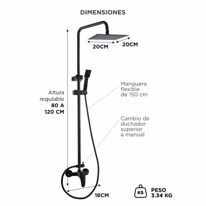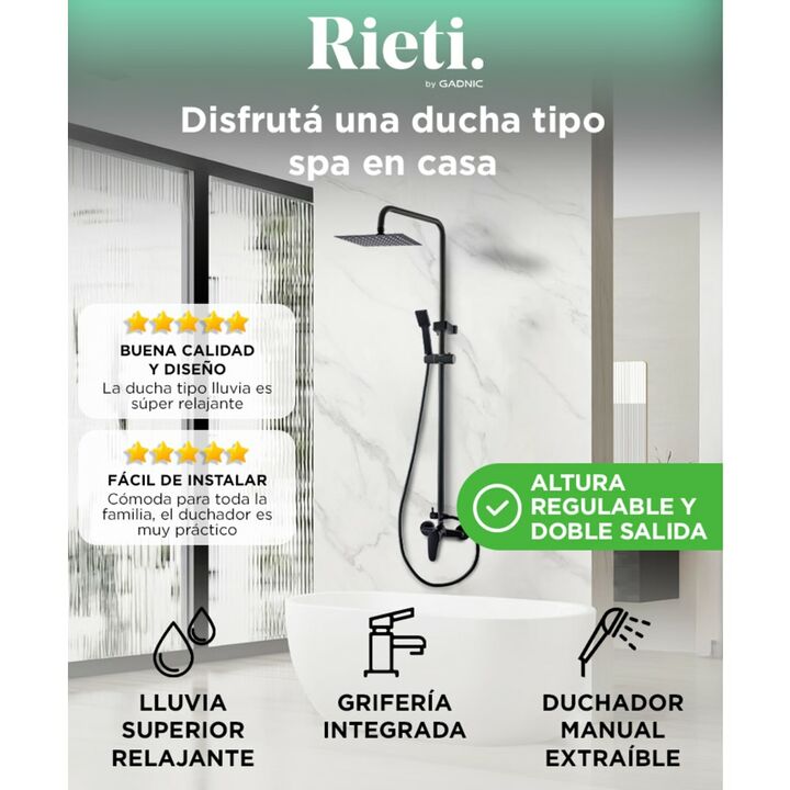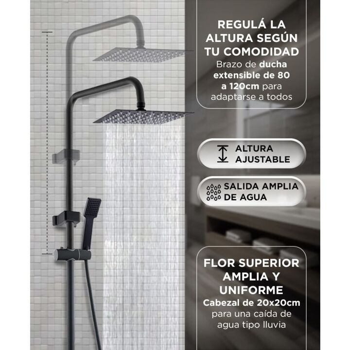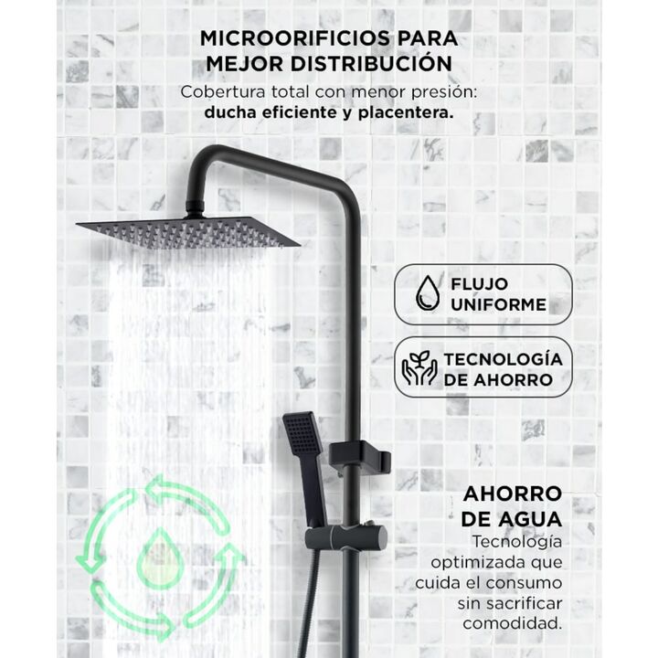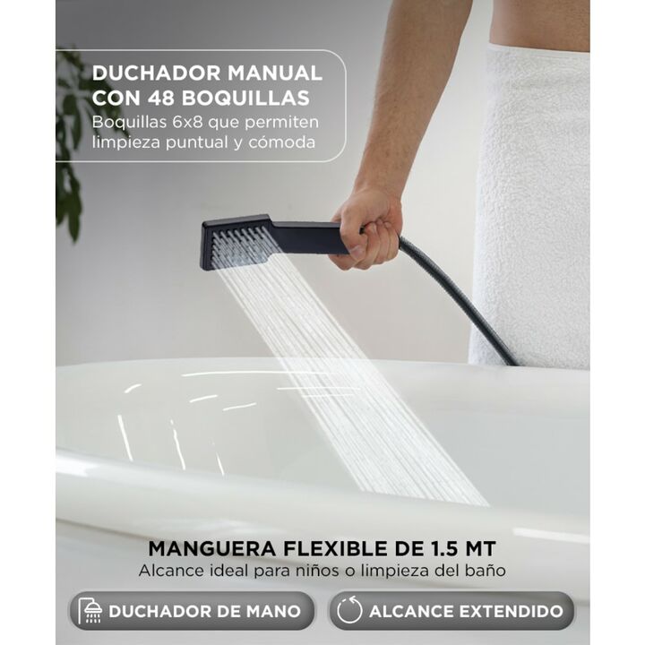 Experiencia tipo spa en casa Ducha superior tipo lluvia con flor de gran tamaño y diseño moderno. Ideal para una rutina más relajante. Altura regulable para todos los usuarios Brazo extensible de 800 a 1200 mm que se adapta a diferentes alturas y espacios. Doble salida: ducha fija y manual Duchador ...
