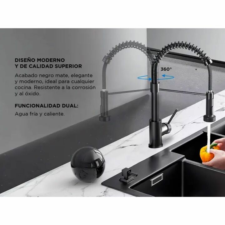 Gadnic presenta las nuevas griferias Rieti Esta grifería combina estilo y funcionalidad para cualquier cocina moderna. Con un diseño elegante en color negro mate y materiales de alta calidad, como el cuerpo de cobre revestido en zinc y las piezas de acero inoxidable, garantiza durabilidad y rendimie...