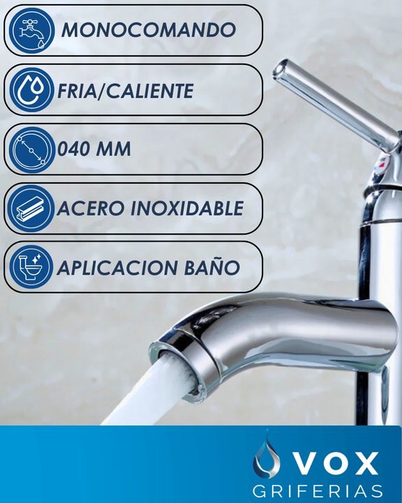 Grifería Monocomando Para Baño Vox Cocina – Acero Inoxidable Cromado