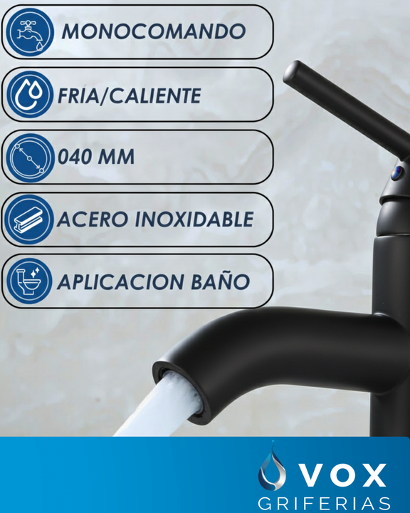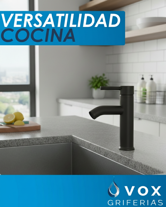 Grifería Monocomando para Baño y Cocina Vox – Acero Inoxidable Negro