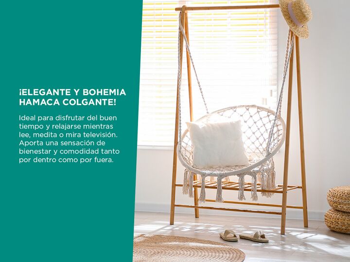 ¡Elegante y bohemia hamaca colgante! Gadnic te ofrece una silla hamaca colgante ideal para disfrutar del buen tiempo y relajarse mientras lee, medita o mira televisión. Aporta una sensación de bienestar y comodidad tanto por dentro como por fuera. El asiento extra ancho es perfecto para un niño o un...