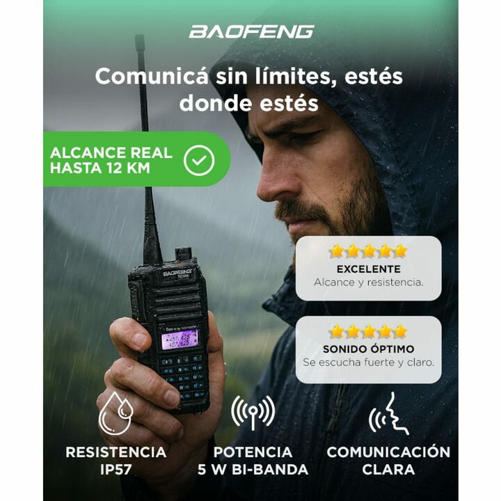 El Baofeng BR-A58 es un dispositivo de radiocomunicación profesional con un rendimiento potente y un rango extendido, ideal para quienes necesitan una solución confiable en entornos exigentes. Con una potencia de salida de 5W y un alcance de hasta 12 km, este equipo garantiza una comunicación clara ...