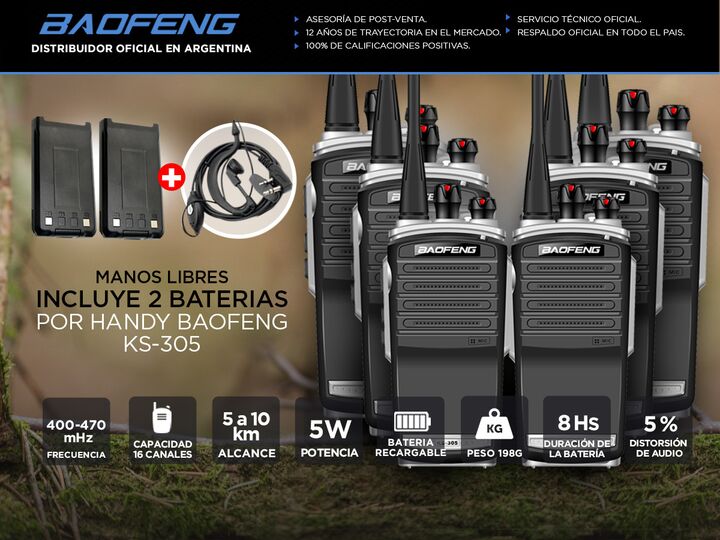 Presentamos el Handy Baofeng BR-A58, el modelo más confiable y popular del mercado. Incluye un auricular manos libres y una base de carga USB para mayor comodidad. Con un alcance de 3 a 5 km en ciudad y de 5 a 10 km en exteriores, es perfecto para actividades como caza, pesca, montañismo, vigilancia...