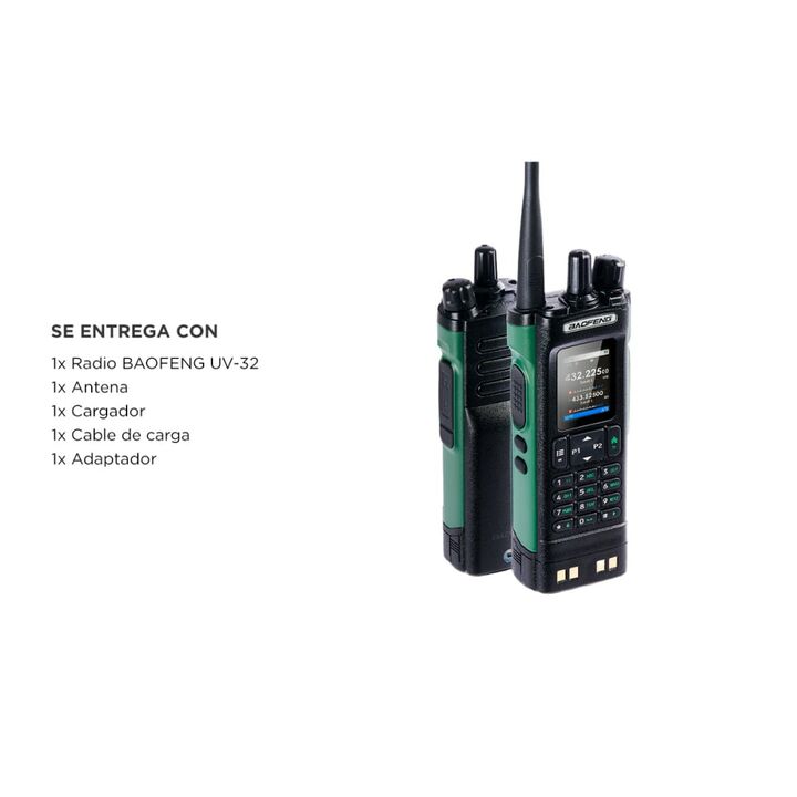 La Radio BAOFENG UV-32 es una herramienta de comunicación avanzada que combina potencia, tecnología y resistencia para satisfacer las necesidades de profesionales y entusiastas de actividades al aire libre. Con una potencia real de 10W y una pantalla HD de 2, este dispositivo garantiza comunicacione...