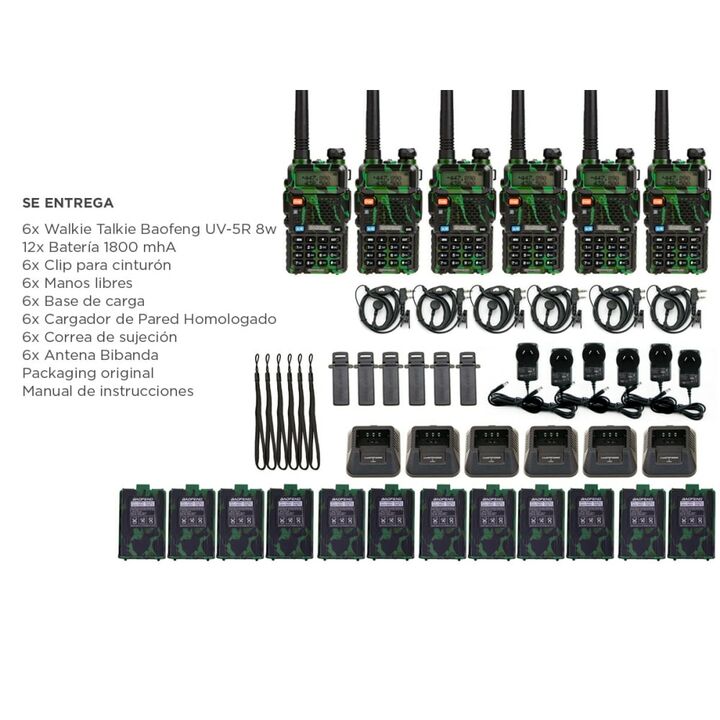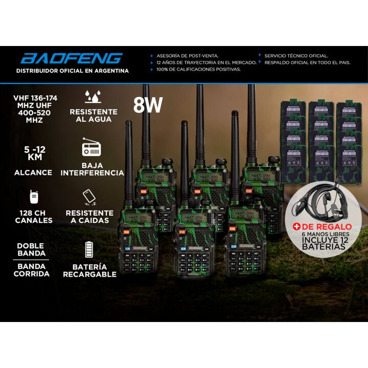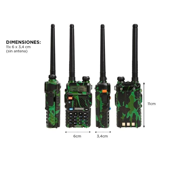 ¡Conéctate donde otros no llegan! El Baofeng UV-5R de 8W camuflado es el radio de doble banda ideal para aventureros, personal de seguridad o actividades al aire libre. Con hasta 12 km de alcance, 2 baterías, manos libres y 128 canales, ofrece una comunicación clara, potente y confiable. ¡Incluye ga...