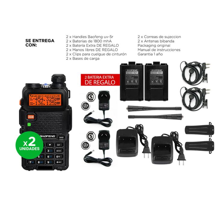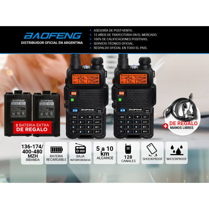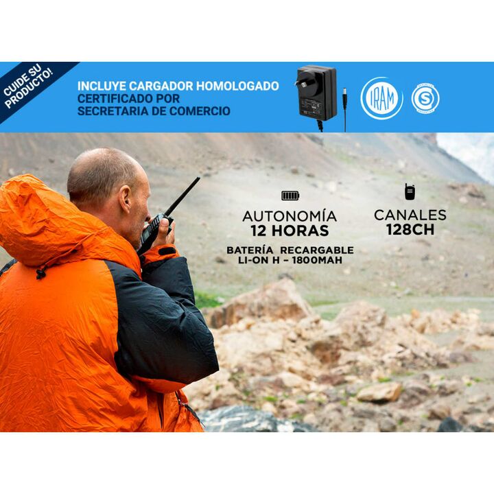 Diseñado para soportar condiciones adversas, este handy es resistente al agua y a caídas, lo que lo hace ideal para aventuras al aire libre. Con un alcance de 5 a 10 km, es perfecto para mantenerte conectado en exteriores. Especificaciones Doble banda/Dual Standby 136-174mHz / 400-480 mHz Rango de C...