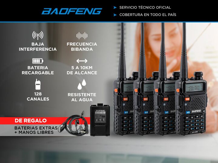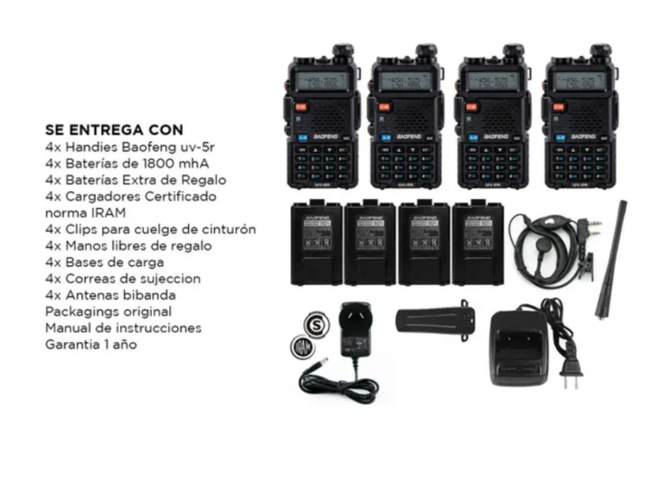 El Kit de Handys Baofeng UV-5R es la solución ideal para quienes buscan una comunicación eficiente y confiable. Especificaciones Doble banda/Dual Standby 136-174mHz / 400-480 mHz Rango de Comunicación (entre dos Handys) 5 a 10 km Capacidad de 128 canales Separación entre canales 5 / 6.25 / 12.5 / 25...