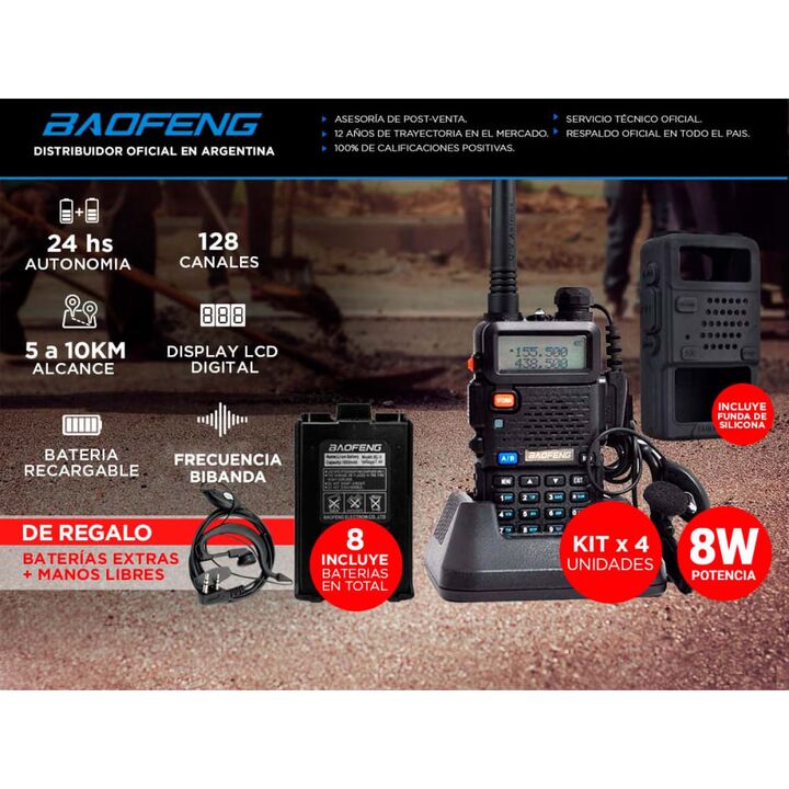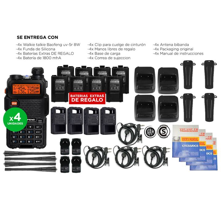 Especificaciones Doble banda/Dual Standby 136-174mHz / 400-480 mHz 8 Watts Rango de Comunicación (entre dos Handys) 5 a 12 km Capacidad de 128 canales Separación entre canales 5 / 6.25 / 12.5 / 25KHz Tensión operado 7.4V Estabilidad de frecuencia 2,5 ppm ( -20 º C ~ 60 º C ) Antena Bi banda Impedanc...