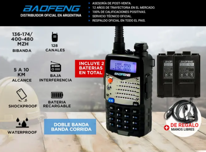El Handy Baofeng UV-5R ofrece un rango de frecuencia de 136-174 MHz y 400-480 MHz, operando en doble banda para mayor versatilidad. Con una capacidad de 128 canales programables, asegura una amplia gama de opciones de comunicación. Su rango de comunicación entre dos handys va de 5 a 12 km, dependien...