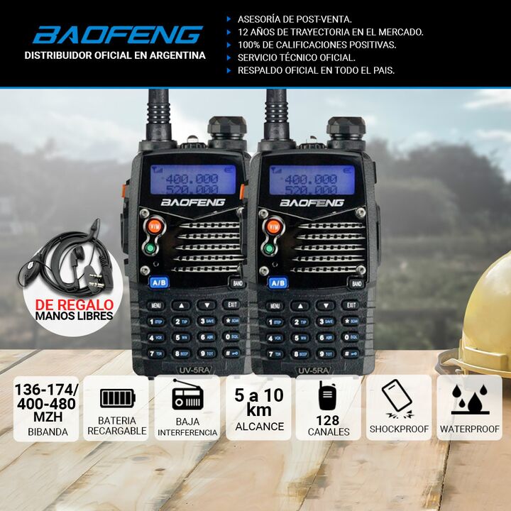 El Handy Baofeng UV-5R opera en un rango de frecuencia UHF y VHF de 136-174 MHz y 400-480 MHz, funcionando como un equipo bibanda para una mayor versatilidad. Su rango de comunicación entre dos handys varía de 5 a 12 km, dependiendo del entorno, y tiene una capacidad de 128 canales. Permite una sepa...