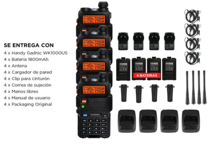 El Handy Gadnic WK1000US es un walkie-talkie de mano compacto y de 10 Watts que ofrece una versatilidad excepcional y un amplio espectro de frecuencias. Este modelo económico incluye una banda especial de recepción VHF, lo que permite una comunicación eficiente y clara. Su diseño como transceptor FM...