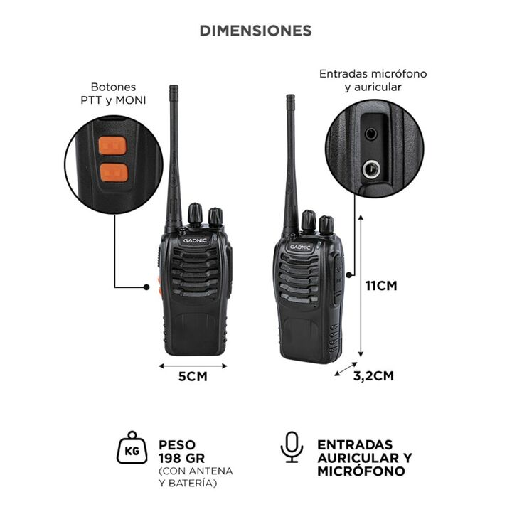 El Handy Gadnic WK99U ofrece un rango de frecuencia UHF de 400-470 MHz y cuenta con una capacidad de 16 canales, lo que permite una comunicación eficiente y versátil. Su rango de comunicación varía de 6 a 10 km, asegurando que puedas conectar con quienes necesites. Con una autonomía de hasta 8 horas...