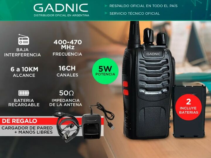 El Handy Gadnic WK99U es un walkie-talkie potente y versátil, que ofrece un rango de frecuencia UHF de 400-470 MHz. Con una capacidad de 16 canales, este dispositivo permite una separación entre canales de 25 KHz, asegurando una comunicación clara y eficiente. Con una potencia de 5 watts y un rango ...