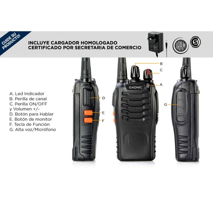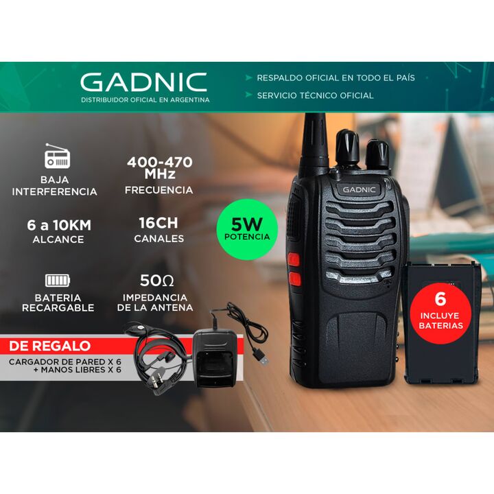 El Handy Gadnic WK99U ofrece una potencia de 5 watts y cuenta con 16 canales en su configuración. Opera en un rango de frecuencia UHF de 400-470 MHz, permitiendo una comunicación efectiva en diversas situaciones. Su capacidad de comunicación se extiende hasta 10 km, lo que lo hace ideal para activid...
