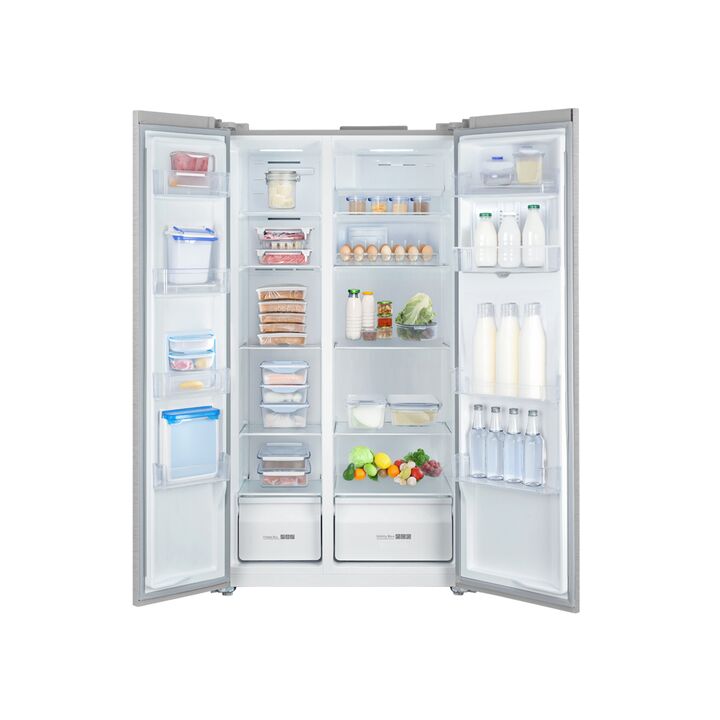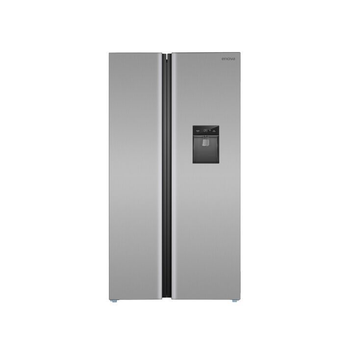 Heladera formato side-by-side con motor inverter y tecnologá No Frost. Heladera de litros y freezer de litros.Excelente acabado y estantes de vidrio templado. Incluye dispenser de agua
