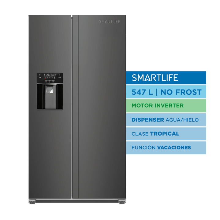 Heladera Side by Side Smartlife SL-SBS690SDI – Acero Inoxidable La heladera Smartlife SL-SBS690SDI combina diseño moderno y máxima capacidad para acompañar tu día a día con eficiencia y estilo. Su formato Side by Side en acero inoxidable ofrece un amplio espacio de 504 litros netos, distribuidos en ...