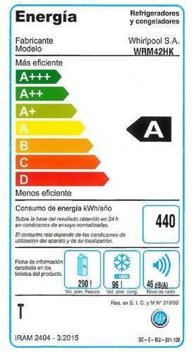 Heladera Top Mount No Frost Inox Whirlpool WRM42HK 386 Lts - WRM42HKDIM Xpert Inverter Tecnología que brinda un mayor ahorro de energía y mantiene las temperaturas estables ayudando a la preservación de alimentos. Estantes Regulables Estantes con altura regulable para brindar mayor comodidad y aprov...
