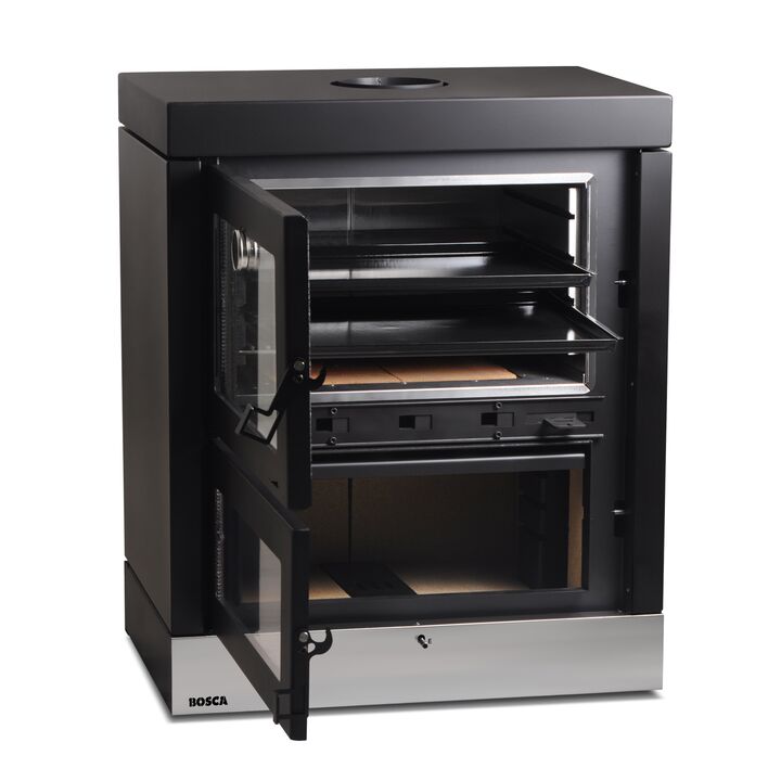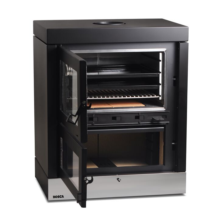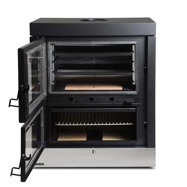 El Horno a Lea Doble Cmara de Bosca combina diseo moderno eficiencia y sabor tradicional. Fabricado con materiales de alta calidad como acero y acero inoxidable est pensado para quienes disfrutan cocinar a fuego lento con precisin y gran capacidad.Este horno cuenta con una cmara de coccin de 57 litr...