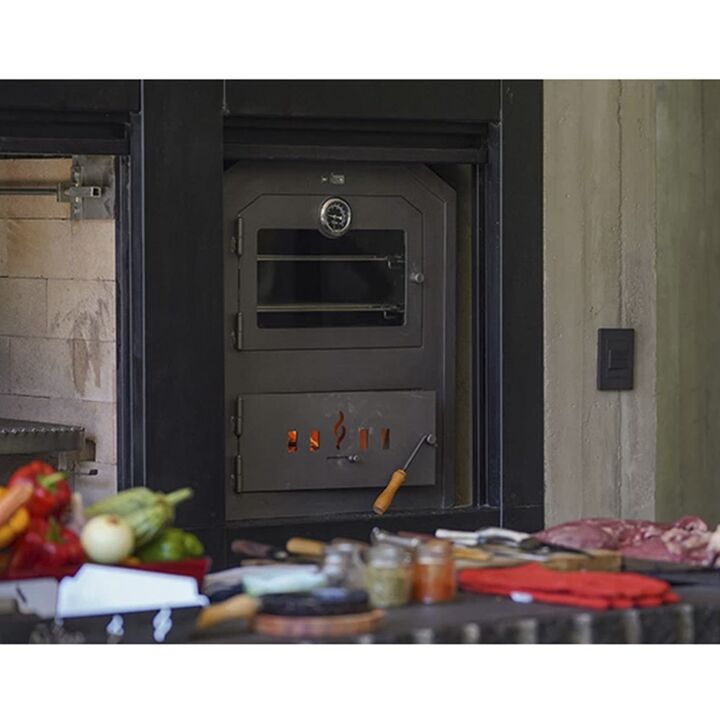 Horno a lea de calor envolvente. En la cmara de combustin de refractarios se quema la lea y sus gases los cuales chocan con el deflector y se dirijen hacia los laterales y luego hacia el techo por donde sale por la chimenea de esta forma envuelve el calor al horno interno el cual esta enlozado y tie...