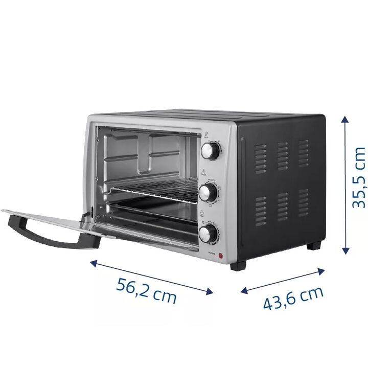 Horno Electrico Tramontina Silver Cook 55l Voltaje: 220V Capacidad de 55L. Termostato para control de temperatura y función de timer. Accesorios incluidos: rejilla. Dimensiones: 56.2 cm de ancho, 35.5 cm de alto y 43.6 cm de profundidad. Cómodo y fácil de usar. Características del producto Con grill...