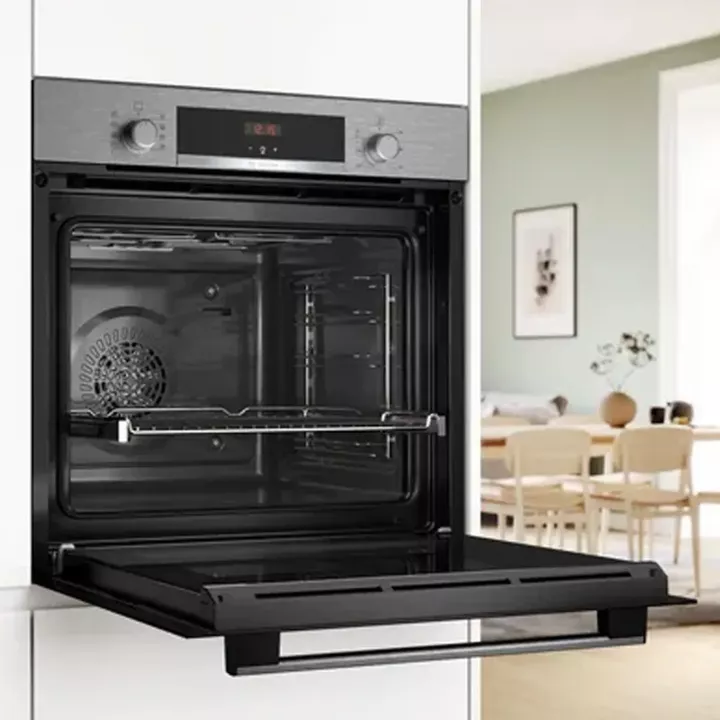 El horno empotrable Bosch HBA514ES3 es un equipo de alta capacidad (71 L) diseñado para cocinas modernas que buscan rendimiento y facilidad de uso.