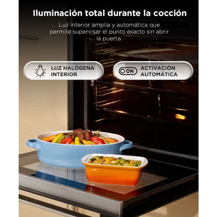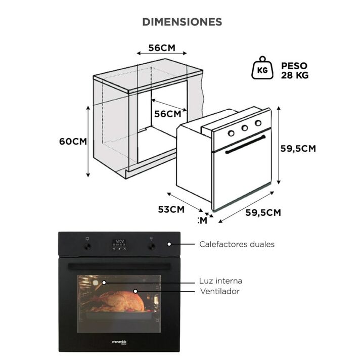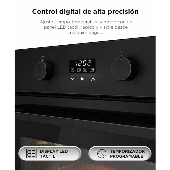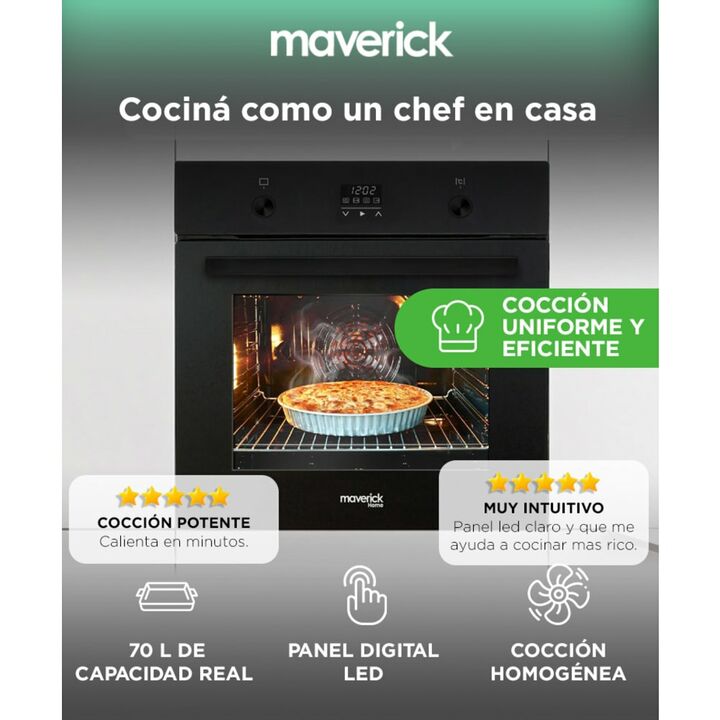 Cocción uniforme para mejores resultados: El horno empotrable Maverick Black Premium está diseñado para distribuir el calor de manera pareja, logrando cocciones más homogéneas en todo tipo de preparaciones, desde platos salados hasta recetas de pastelería. Sistema multifunción para mayor versatilida...