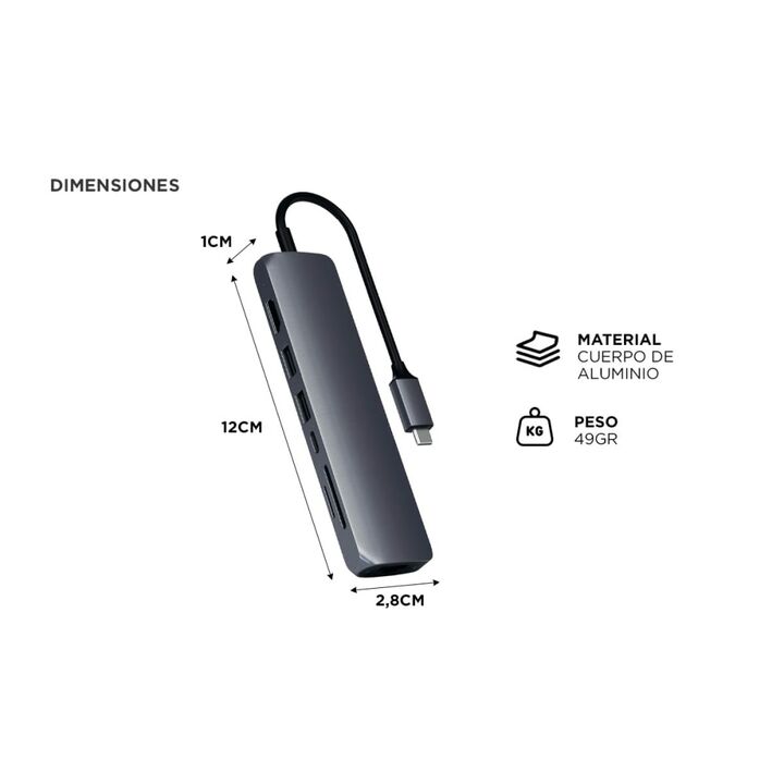 Llevá tu productividad al siguiente nivel con el adaptador Satechi 6-en-1 USB-C Slim Multiport. Diseñado para ofrecer versatilidad y eficiencia, este adaptador te permite conectar múltiples dispositivos a través de sus diversos puertos, incluyendo HDMI 4K, USB-C con carga rápida de 100W, USB-A de al...