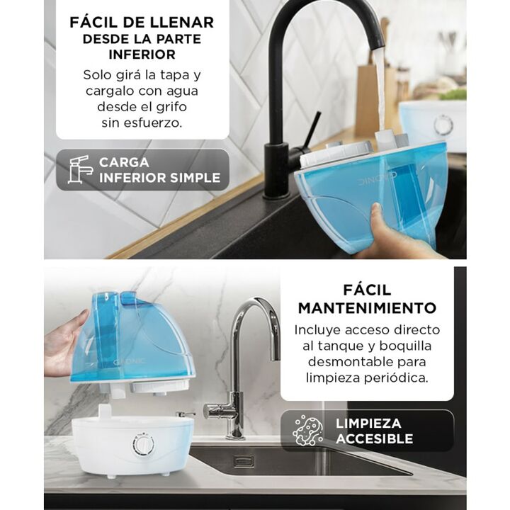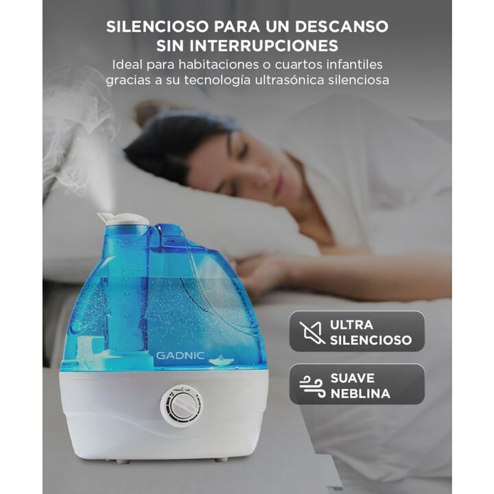 ¡Gadnic presenta su nueva linea de Humidificador de ambiente ! Funcionamiento silencioso. ¡Duerma como un bebé! Este humidificador duradero para toda la casa rocía la suave neblina fría que anhela de manera estable y eficiente, sin pitidos, silbidos ni crujidos. ¡Duerme mejor, respira mejor, vive me...