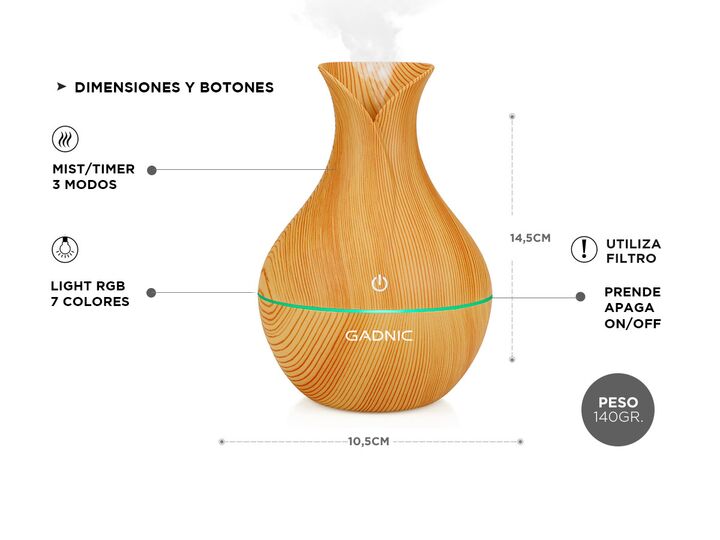 ¡Nuevo Difusor Gadnic Ultra Silencioso HMDF1220! Su gran capacidad y mayor tiempo de funcionamiento continuo lo convierte en uno de los mejores difusores aromáticos del mercado. Ya no es necesario rellenar el reservorio por la noche, con solamente una carga de agua, podrá disfrutar éste humidificado...