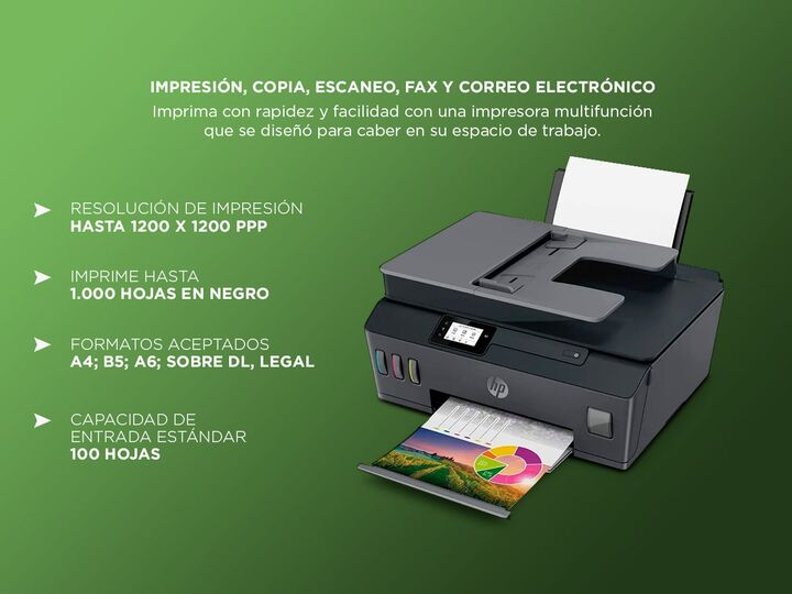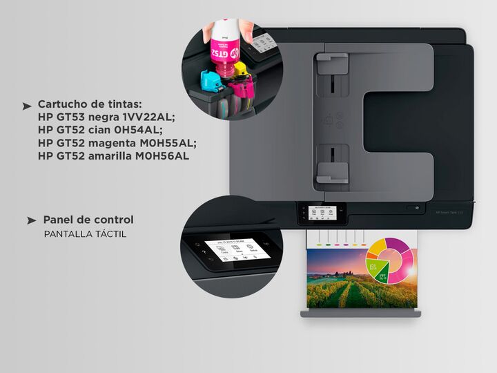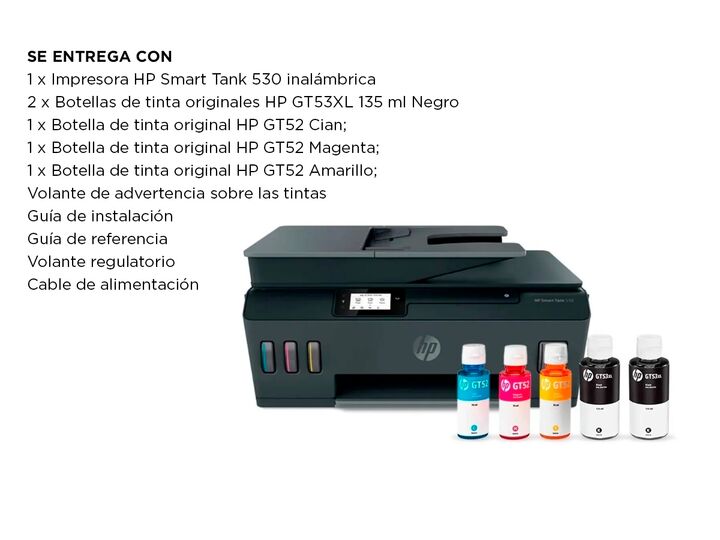 MULTIFUNCION PARA EL DIA A DIA La impresora HP Smart Tank 530 combina impresion escaneo y copiado en un solo equipo compacto. Esta pensada para hogares y oficinas pequeñas con necesidades constantes. Su sistema Smart Tank facilita el manejo de tinta. Permite resolver tareas diarias con eficiencia. I...